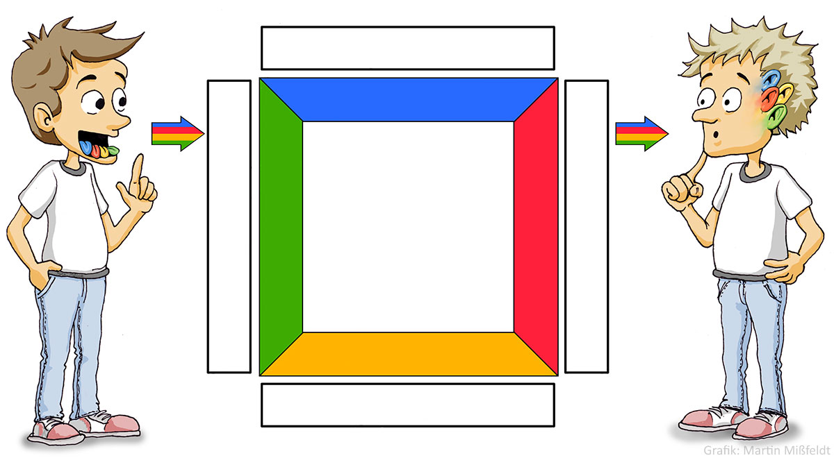 Warum diese Grafik? Ich bin ja seit einiger Zeit Lehrer an einem Gymnasium, und dort unterrichte ich nicht nur Kunst, sondern auch LER (Lebensgestaltung, Ethik und Religion). In der 8. Klasse behandeln wir das Thema Kommunikation - auch um Konflikte bewusster und damit einfacher besprechen zu können. Friedemann Schulz von Thun ist fest im Rahmenlehrplan verankert. Ich erstelle daher Arbeitsblätter für den Unterricht und genau dafür zeichne ich diese (und andere) Grafiken, die ich dann in meinem Unterricht verwende.