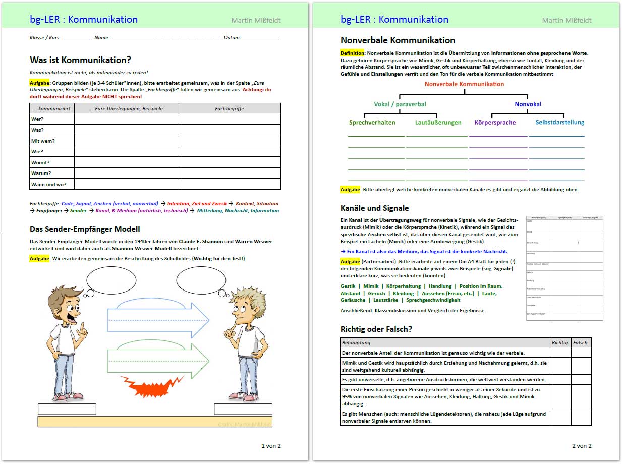 In meinem Unterricht im Fach LER (Lebensgestaltung, Ethik und Religion) behandel ich das Thema Kommunikation. Ziel ist es, dass sich die Schüler darüber bewusst werden, dass es bei der Kommunikation miteinander leicht zu Mißverständnissen kommen kann. Häufig ist das die Ursache von Streit, der dann wiederum in Gewalt ausarten kann. Hier stelle ich vor, wie ich an das Thema herangehe.